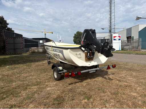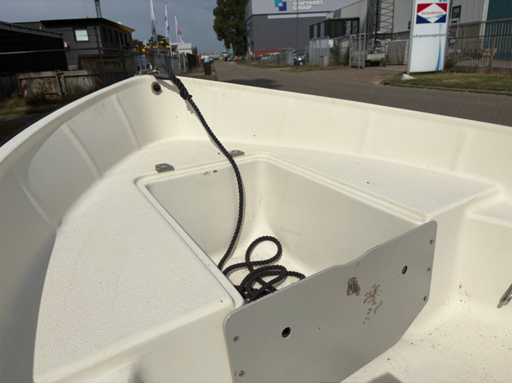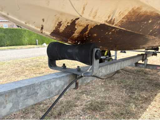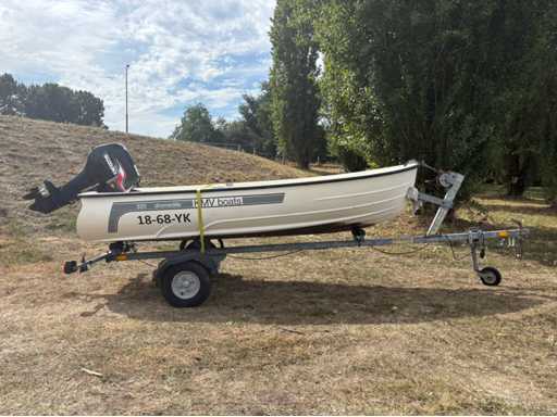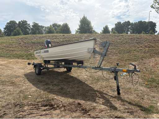 Avec un bateau 320 Dradille, construit en 2004, équipé d’un moteur hors-bord Suzuki 9,9 cv 2 temps et d’une remorque. Version originale, équipée d’un réservoir de carburant et d’une bâche. Gauche et droite légers dommages au gelcoat présents. La valve de la pointe est endommagée et doit être remplacée ; Les charnières sont toujours présentes. Le bateau est par ailleurs dans un état soigné (VEUILLEZ NOTER ! ce véhicule a une immatriculation de plaque d’immatriculation, lors de la collecte, vous devez l’enregistrer sur place auprès d’un tiers ou l’exporter, il y a des frais supplémentaires impliqués) (Marge, pas de TVA)