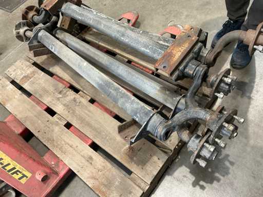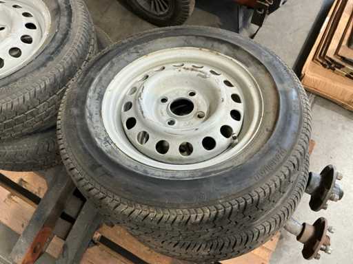 Avec essieu normal avec 2x roue idem avec pneu. Chacun avec des dimensions d’environ 140 cm de largeur, complet avec des accessoires et 4x roue avec pneu 155R13 RADIAL. Sur palette.