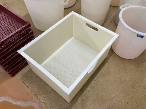 10 différents bacs en PVC, y compris NORAH PLASTICS, y compris avec glissière 40 et 50 cm avec hauteur de 52 cm, avec 5 bacs en PVC empilables avec plm dim: 60x50x10 cm, situés dans la salle 98