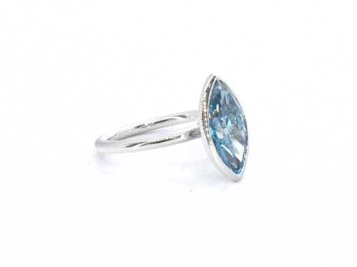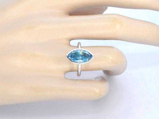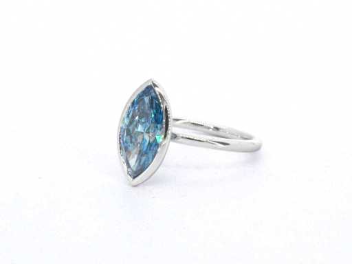 Bague en or blanc grand diamant marquise bleu 3,08 carats