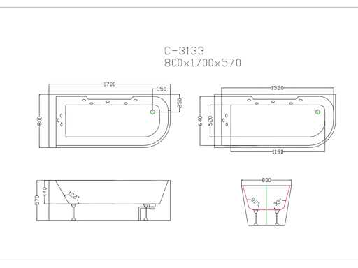 Baignoire balnéo vitrée blanche - 1 place - 263L - angle gauche (x2)