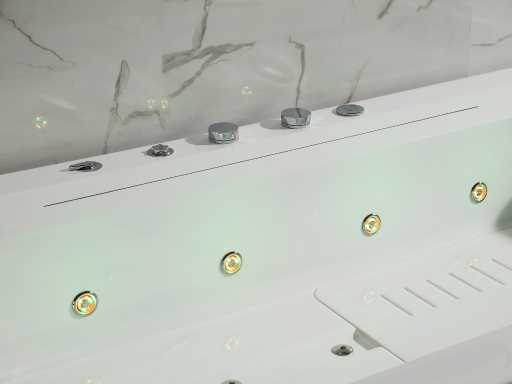 Jets de massage : 18 jets hydro-massage, dont 10 grands réglables et 8 petits jets avec éclairage couleur thérapie.