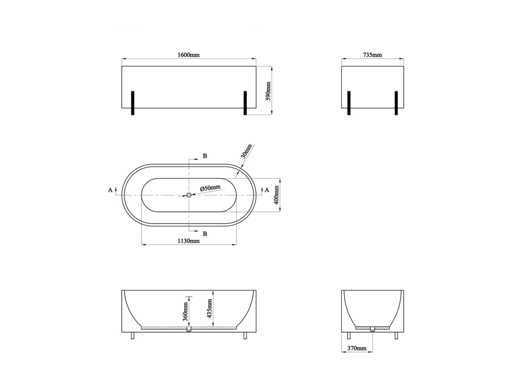 Baignoire îlot ovale blanche avec pieds noirs