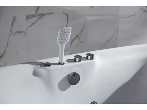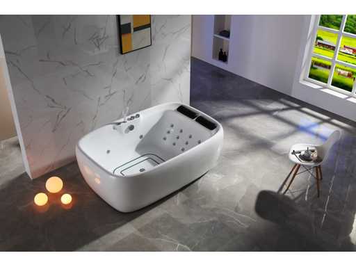 Baignoire massante en îlot 2 personnes blanc brillant - Bluetooth