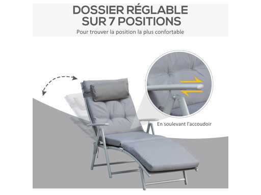 Bain de Soleil Pliable transat inclinable 7 Positions Chaise Longue (x2)