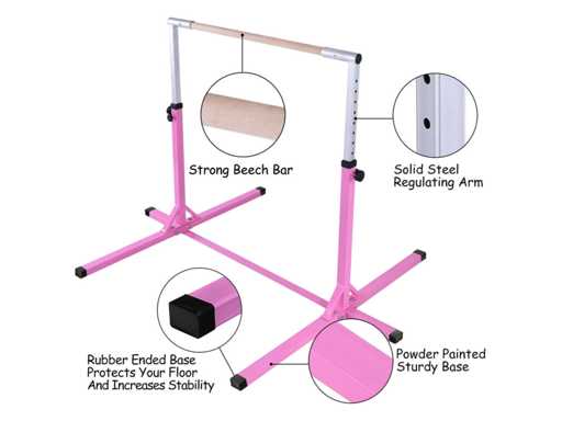 Conception ergonomique pour une sécurité maximale : les patins en caoutchouc antidérapants situés sous la barre offrent une stabilité et une sécurité accrues, protégeant ainsi le sol des rayures et évitant les accidents tels que les glissades et les chutes. Grâce à cela, la barre d'entraînement de gymnastique offre un environnement d'entraînement plus sûr pour les enfants.