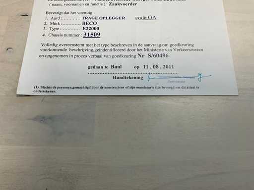 Constructeur : B.V. BECO, De Limiet 18, Vianen, Pays-Bas