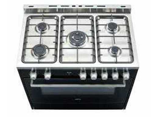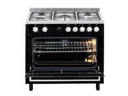 Cuisinière ; gaz ; 90 cm ; noir ; 5 brûleurs ; grilles en fonte ; aut. Allumage