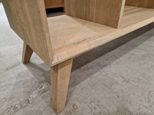 Bibliothèque Sofia en chêne Castle-Line 180 x 40 x H140cm Ouverte - Washing gris rustique sur pieds en bois