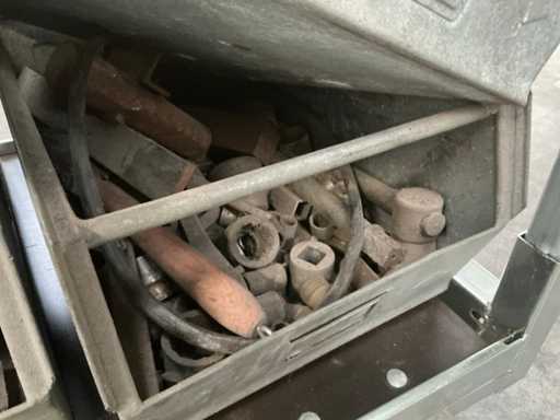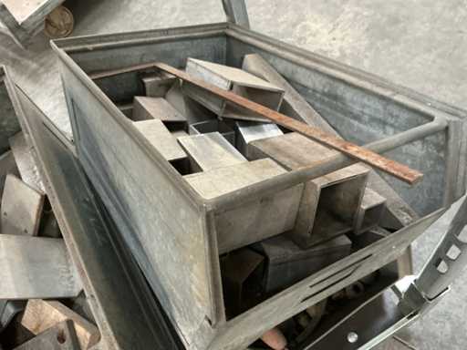Boîte de rangement métallique avec contenu (4x)
