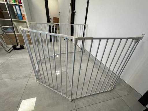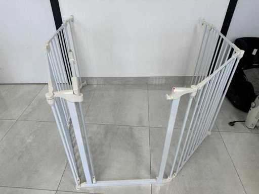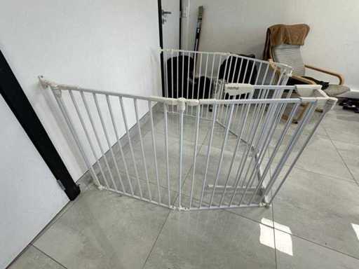 Peut être configuré de façon modulaire sous différentes formes (boîte, demi-cercle, unité d’angle, séparateur de pièce). Comprend un panneau de porte avec serrure de sécurité. Des supports muraux disponibles. Des barres métalliques solides. Adapté aux bébés et aux tout-petits