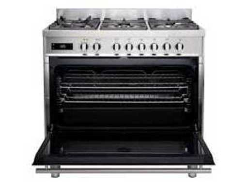 Cuisinière, gaz, 6 brûleurs, grilles en fonte, 1 four, acier inoxydable (prix de détail 3599 euros)