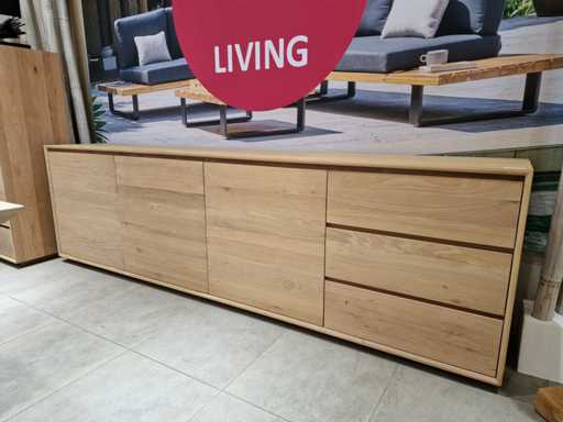 Buffet Craftwood Oak Lalisa Solid - 3 grandes portes battantes + 3 tiroirs 270cm x 45cm x H91cm