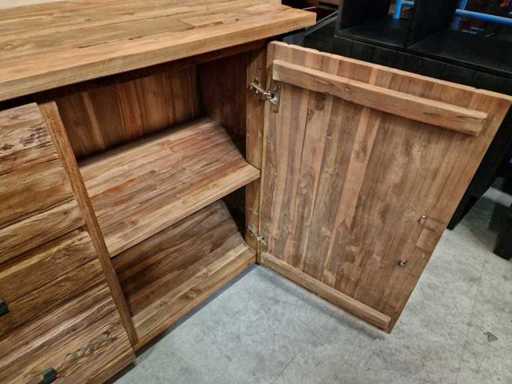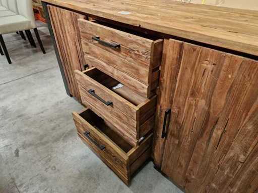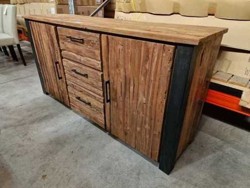 Buffet HSM en teck Atlanta Vintage avec 2 portes et 3 tiroirs - Cadre en métal noir 170 x 50 x H85cm - Finition brute