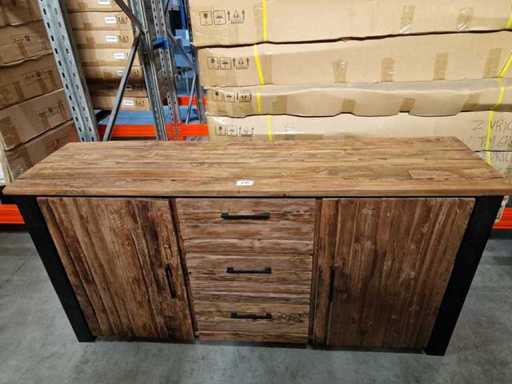 Buffet HSM en teck Atlanta Vintage avec 2 portes et 3 tiroirs - Métal noir