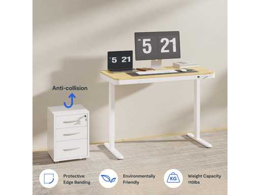 Optimisé pour le télétravail : Fabriqué avec une structure en acier de qualité industrielle, un plateau en bois certifié FSC et un mécanisme de levage électrique intégré, ce bureau assis-debout peut supporter jusqu’à 45 kg et est parfaitement conçu pour tous les types d’aménagements de bureau à domicile.