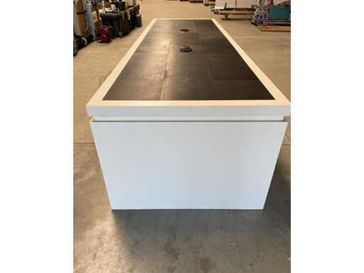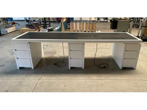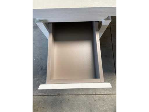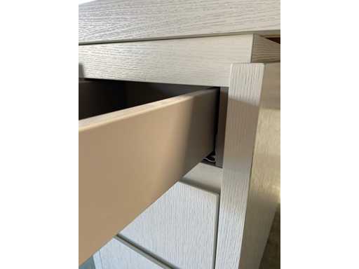 Avec incrustation en cuir et équipé de 18 tiroirs.