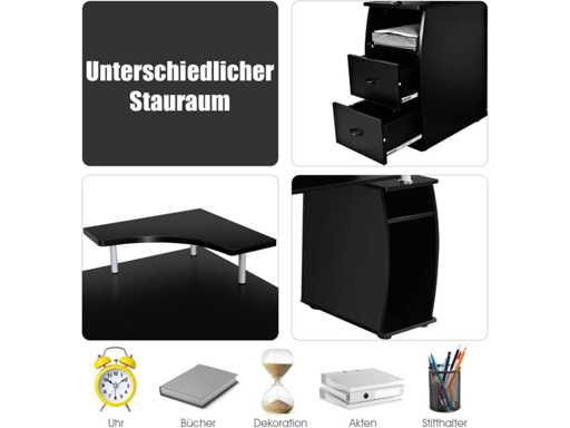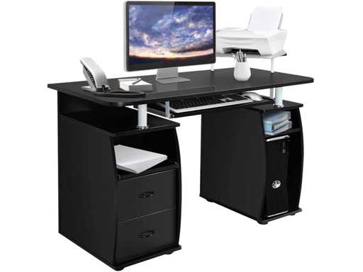 Pratique. La table de travail est équipée d'un plateau pour imprimante, d'un tiroir pour clavier et de 2 tiroirs. Plus d'espace pour les fournitures de bureau, l'ordinateur, l'écran, l'imprimante et la papeterie.