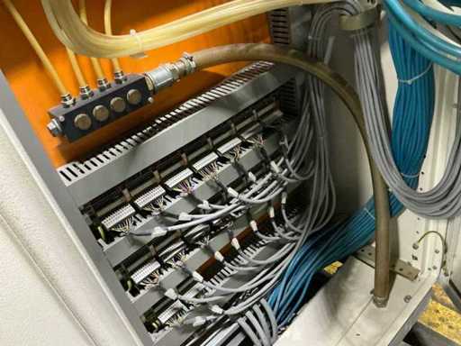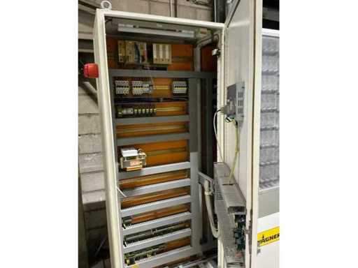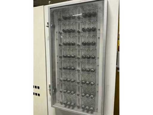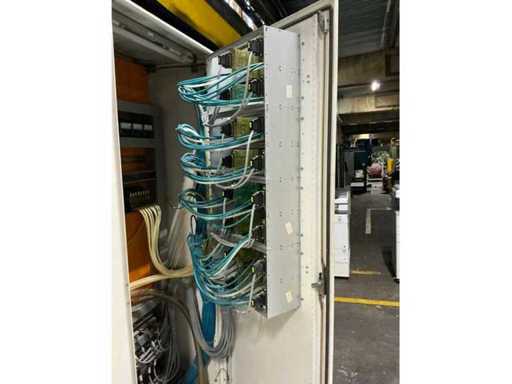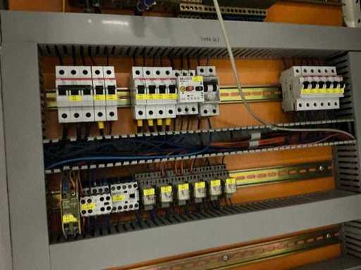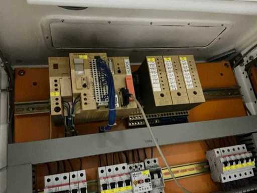 le contenu comprenant des PLC Siemens, transformateur, relais, disjoncteurs, blocs pneumatiques de vannes, ...