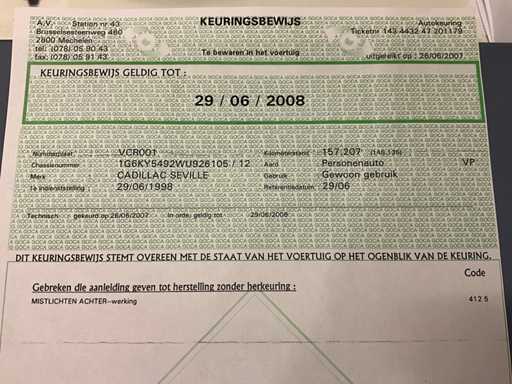 La voiture ne démarre pas → n’essaie pas de démarrer avec un surbooster, donc l’état du moteur est inconnu - Selon le dernier certificat d’inspection (29/06/2008 avec 157207 km), la voiture a été approuvée avec seulement un feu antibrouillard arrière - fonctionnement.