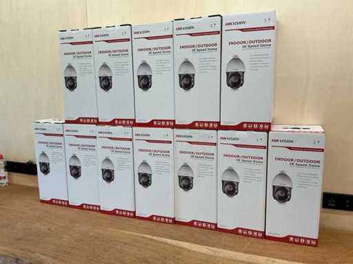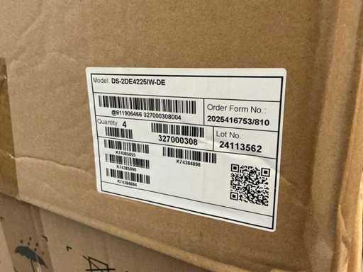 Série de 48 pièces de caméras de sécurité Hikvision DS-2DE4225IW-DE neuves/inutilisées. Emballés individuellement dans une boîte. Emballé par 4 boîtes dans une boîte extérieure (46 x 46 x 54 cm). 12 boîtes au total.