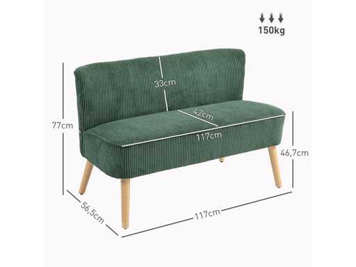 Canapé 2 places, bois, polyester velouté, mousse