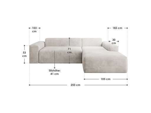 Dimensions (LxPxH) : 250 x 183 x 71 cm