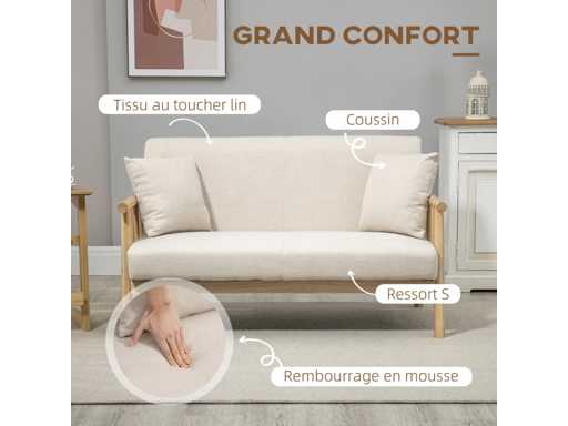 - Matériaux : polyester, mousse, bois de caoutchouc