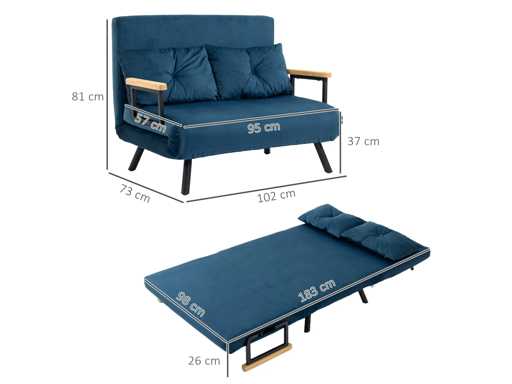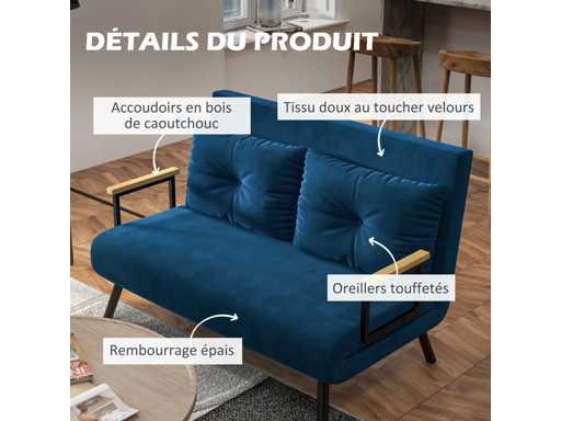 Canapé convertible 2 places avec dossier réglable à 5 niveaux