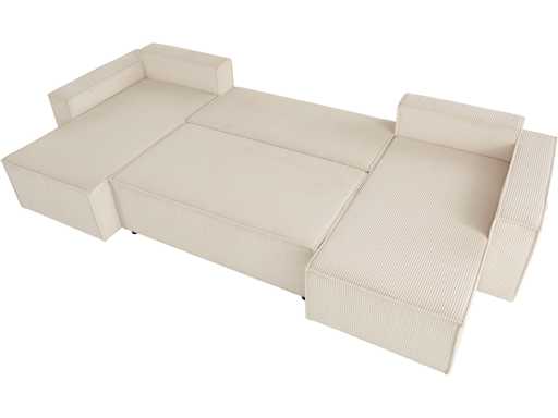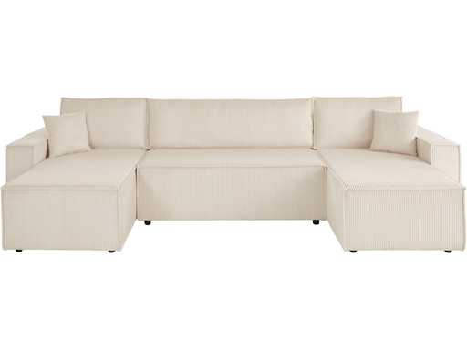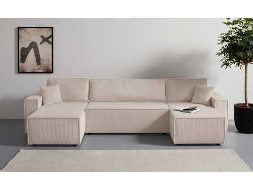 Canapé d'angle panoramique - convertible - tissu cotelé beige