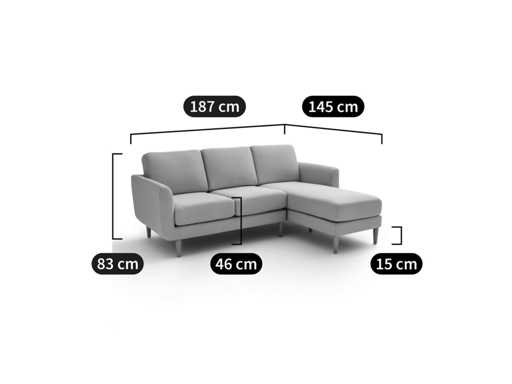 • Assise : L163,5 x H46 x P52 cm (Assise méridienne : 118,5 cm)