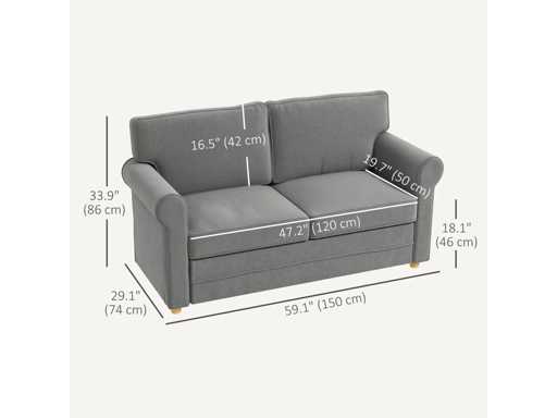 • Dimensions hors tout : 59,1 po L x 29,1 po P x 33,9 po H (150 x 74 x 86 cm)