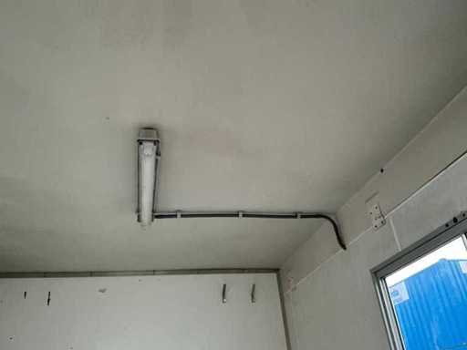 Équipé de toilettes, espace de rangement, pieds de soutien abatteurs