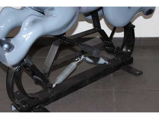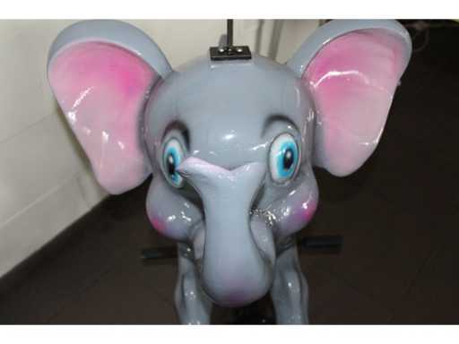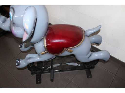 Éléphant en bois avec balançoire métallique d’origine ; Venant du manège