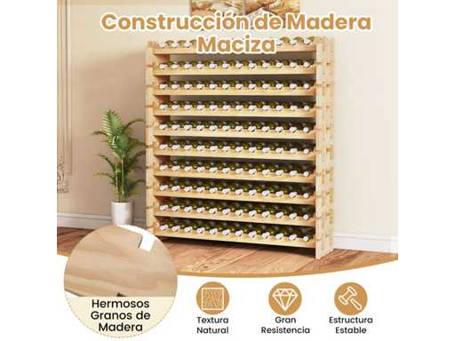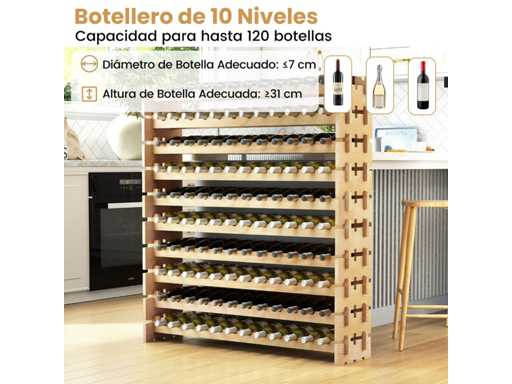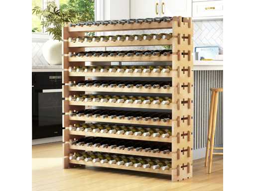 Casier à vin 120 bouteilles, support empilable à 6 niveaux avec structure en bois massif