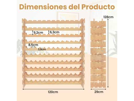 Caractéristiques: Il peut être configuré à différents niveaux pour répondre à vos besoins de stockage. Bois de pin de haute qualité pour une grande résistance et une grande stabilité Les barres ondulées offrent un support sûr pour votre collection de vins. La conception inclinée du rangement contribue à préserver la fraîcheur des vins. Parfait pour les cuisines, les salles à manger, les caves à vin et plus encore Assemblage rapide et sans outil Budget Couleur : Naturel Matériau : Bois de pin Dimensions du produit : 120 cm x 29 cm x 79 cm (L x l x H) Capacité de charge : 90 kg Poids net : 9 kg Poids brut : 10,5 kg