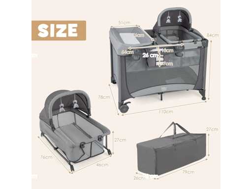 Centre de puériculture portable 5 en 1 avec berceau et couffin
