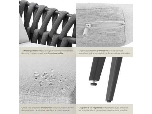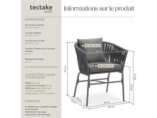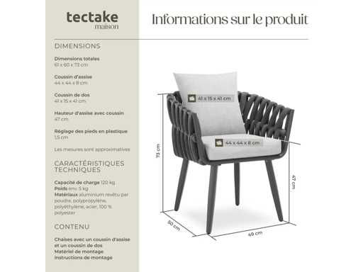 Coussin d'assise (lxPxH) : env. 44 x 44 x 8 cm
