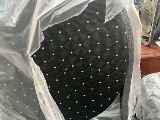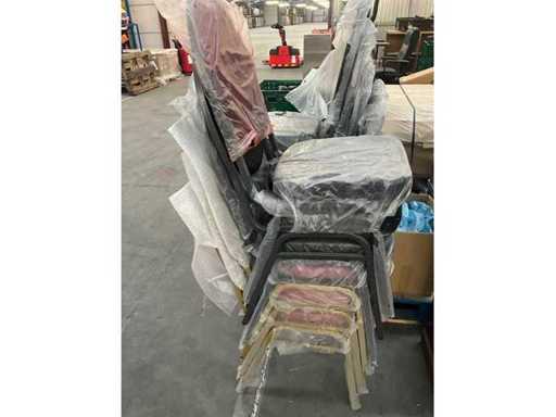 Empilables. Équipé d’une base métallique et d’une sellerie en tissu, de différentes couleurs.