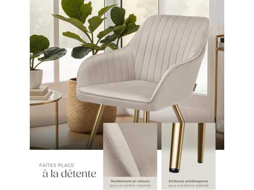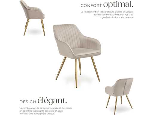 Chaise de Salle à Manger rembourrée - Taupe et or (x6)