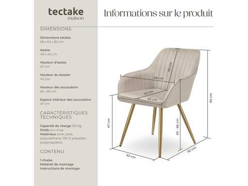 Dimensions du produit : 58P x 62l x 82H centimètres