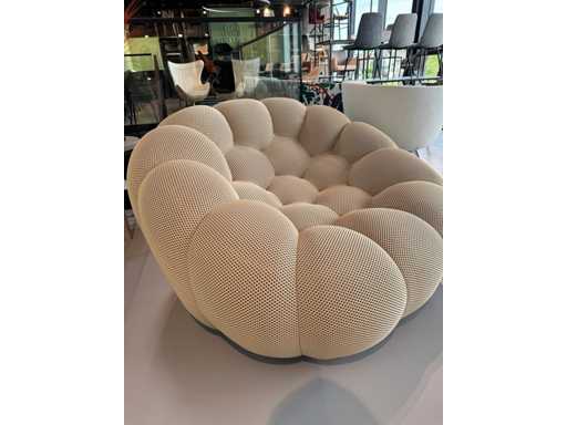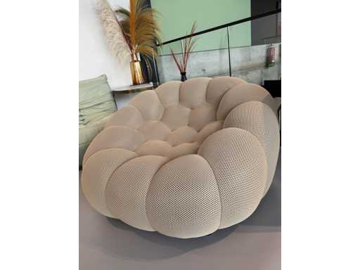 1x Fauteuil Design, beige, tissu polyester, modèle : BBL-13, dimensions : 123x118x71cm, inutilisé