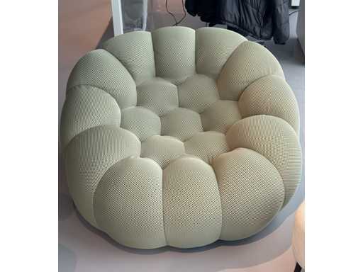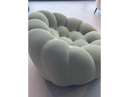 1x Fauteuil Design, tissu vert, polyester, modèle : BBL-13, dimensions : 123x118x71cm, inutilisé
