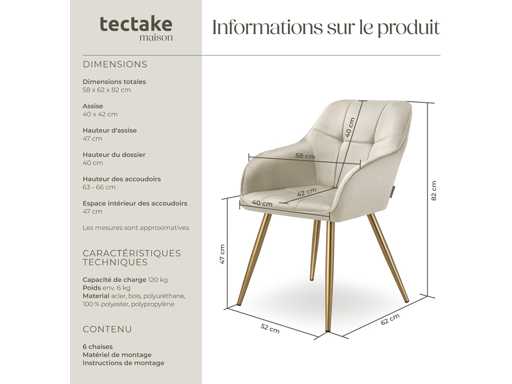 Chaises Velours Matelassées Rembourrées Moderne (mix x6)