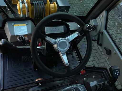 Inutilisé, attelage rapide hydraulique, boîte fermée 1600 mm, fourche de chariot 900 mm, hauteur de levage 3 200 mm, fonction hydraulique supplémentaire, perche télescopique, éclairage routier, siège à suspension pneumatique, 2 vitesses de course, caméra de recul