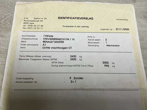 Châssis cabine Renault Master 2020 - Euro 6 - climatisation