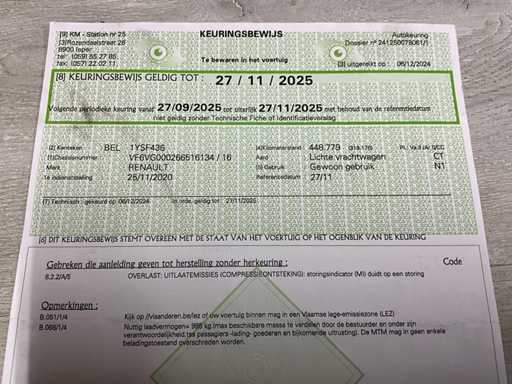 Inspection technique DD. 12/06/2024 à 448779km. avec seulement 1 commentaire : 8.2.2/A/5. - la première et la deuxième vitesse font du bruit - 6 vitesses - dégâts aux deux rétroviseurs mais fonctionnels - avec la climatisation