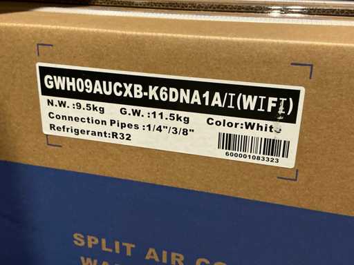 Composée d’une unité extérieure GREE GEH09Aa-K6DNA1F/0 et 1 unité intérieure pour le montage mural GREE GWH09AUCXB-K6DNA 1 A/1 Tous deux dans un emballage scellé d’origine, 1ère photo purement indicative