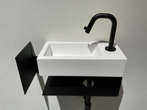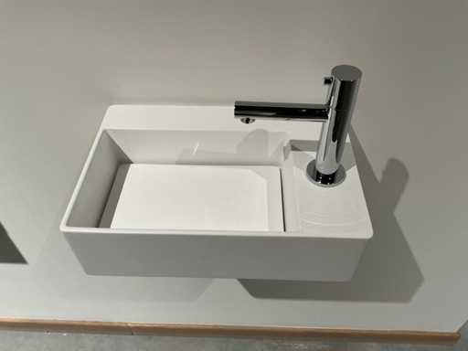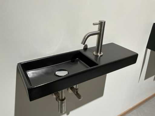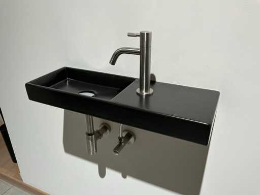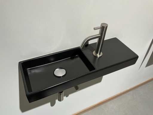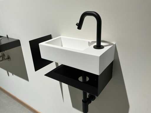 Y compris lavabo CLOU FLUSH 3 avec étagère CLOU FLUSH (36x18x9cm), lavabo CLOU MINI WASH ME (45x20x6cm), lavabo CLOU NEW FLUSH 2 (56x19x6cm), tous équipés d’un robinet d’eau froide avec CLOU FREDDO
