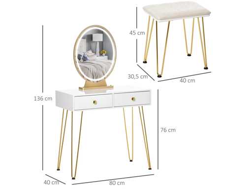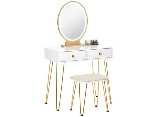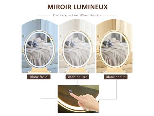 Coiffeuse Table de maquillage moderne - Miroir LED réglable intégré